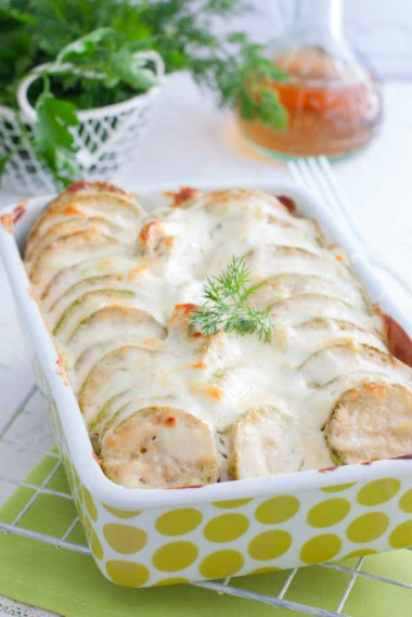 Сочные летние овощи под слоем расплавленного сыра станут прекрасным гарниром или основным блюдом.