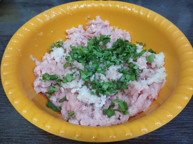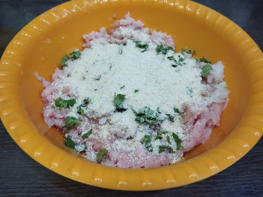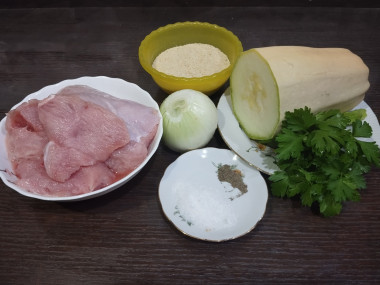 Филе индейки, кабачок и лук пропустила через мясорубку.