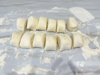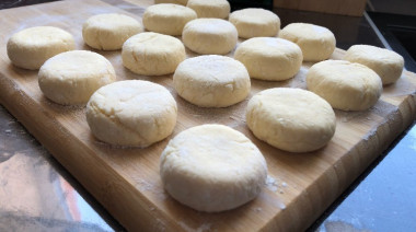 Делю на 12 частей, округляю, хорошо обваливаю в муке и с помощью ножа формирую в форме шайбы. Очень мне нравится эта идея. Где-то увидела в интернете. Кручу сырник со всех сторон об нож. Даже не знаю как объяснить еще. Возможно этот способ уже все знают, кроме меня :)