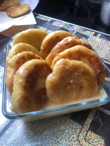 В заливке первые мои сырники) так сказать, пробка пера))) а так, мои едят со сгущёнкой)
