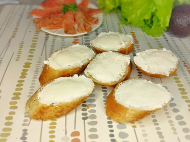 Хлеб для бутербродов не нарезайте слишком толсто или тонко, 1,5 см будет в самый раз. А вот форму и размер кусочков можете делать любую. Для ежедневного стола они могут быть стандартными, для праздничного будут красиво смотреться небольшие, изысканно оформленные и поданные на большом блюде. Если у вас нет времени делать украшения на бутербродах, просто намажьте их сырной массой и уложите сверху рыбу.