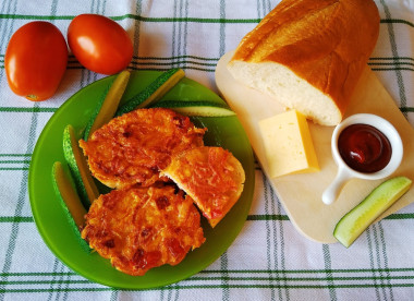 Субботним утром, когда сонная семья собирается за столом, так хочется накормить всех чем-то вкусным. Но так, чтобы не тратить много времени. Эту задачу как раз решают горячие бутерброды. Нашла вот этот замечательный рецепт. Внесла небольшие изменения, вместо болгарского перца добавила помидоры. Чтобы они не потекли на раскаленной сковороде, избавила их от семенной серединки и нарезала только упругие стенки. Вареную колбасу решила натереть на крупной терке для большей однородности начинки. Из специй добавила сушеные овощи. Бутерброды получились классные! Пожарились быстро, все довольны. Очень вкусно, напоминает пиццу.