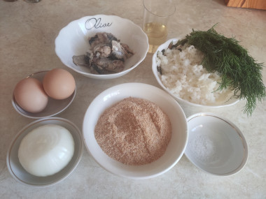 Заинтересовал рецепт :котлеты из консервы сардины с рисом и решила приготовить на ужин. Рис отварила,с консервов слила жидкость. Кусочки сардины размяла вилкой. Лук мелко порезала и обжарила до золотистого цвета. Смешала в миске рис, размятые консервы,обжаренный лук, мелко порезанный укроп,посолила,поперчила. Затем добавила яйца и ещё раз хорошенько перемешала. Сформировала котлеты,обваляла в сухарях и обжарила на растительном масле до готовности с двух сторон.