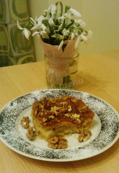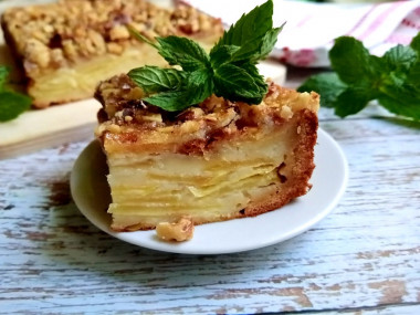 Наконец-то приготовила этот яблочный пирог, получилось, действительно, очень нежно и вкусно. Запеченные орехи придали этому пирогу особый вкус. Мария, спасибо большое за рецепт, буду делать еще