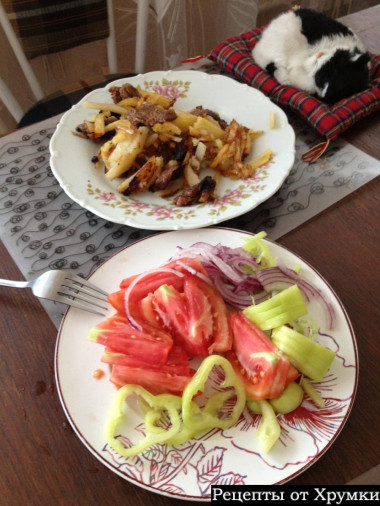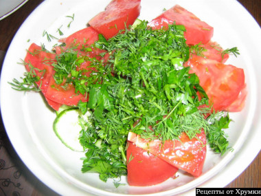 Салат из свежих помидоров. Я готовлю салат из свежих помидоров по этому кулинарному рецепту для своего свекра. Такая еда подходит для летнего стола и для зимних посиделок. Рецепт я взяла из одной старинной книги, которую получила от своей бабушки уже без обложки, но все, что готовила по рецептам с этих страниц очень вкусно и красиво получается.