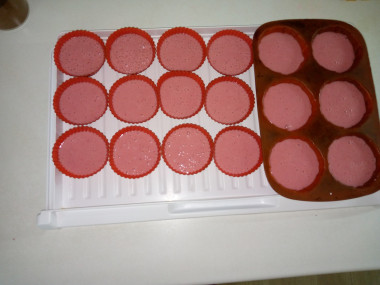 В общей сложности у нас получилось около 660 мл смеси для мороженого, хватило на 6 формочек по 60 мл и две баночки от йогуртницы (одну наполнили полностью (около 200 мл) и одну наполовину (около 100 мл)). В морозилке мороженое оставили на ночь.