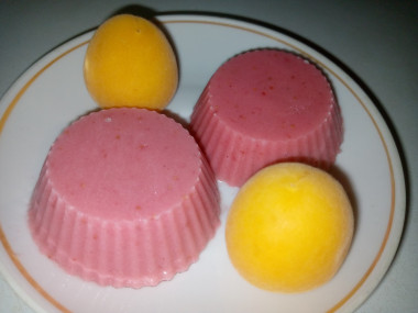 Молоко использовали жирностью 3,4 процента, желтки от яиц категории С1. Клубника была замороженная, но только 160 граммов. Недостающее количество клубники заменили бананом. Крахмал взяли кукурузный, вместо лимонного сока добавили щепотку лимонной кислоты.