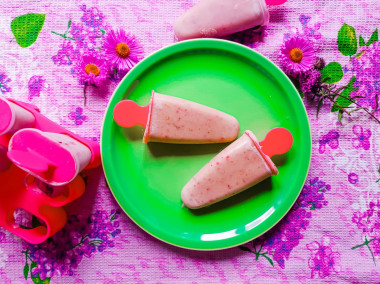Разложите молочно-клубничную массу в формочки для мороженого или в контейнер и отправьте на 6 часов в морозильную камеру. Если для приготовления мороженого используется контейнер, то через каждые полчаса застывающую массу нужно перемешать. Мороженое в формочках можно оставить на ночь, не мешая. Приятного аппетита!