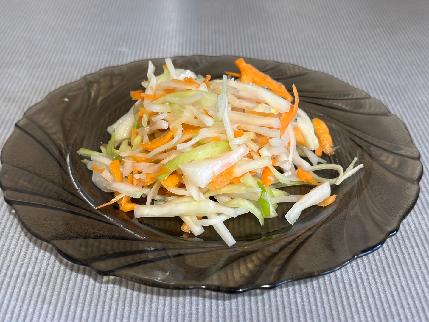 В советских столовых этот салат называли просто "витаминный". Он был обязательным дополнением к обеду: первое, второе и салат из капусты. Готовили его в огромных тазах, а секрет вкуса был в правильном соотношении соли, сахара и уксуса, а также в том, что капусту слегка прогревали, чтобы она стала мягче, но не потеряла хруст.