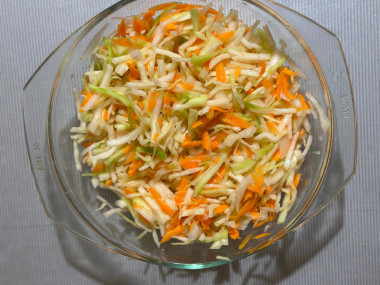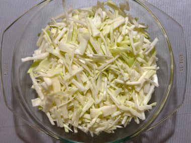 Капуста: для этого салата лучше всего подходит капуста поздних сортов (зимняя). Она плотная, сочная, сладковатая. Молодая капуста более нежная и водянистая, ее нужно прогревать меньше.