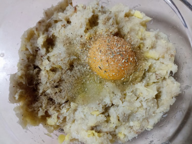 Куриное яйцо вымойте под проточной водой и вбейте в фарш. Добавьте соль и сушеные травы по вкусу. Их можно заменить на мелко порубленную свежую петрушку или укроп. Это добавит котлетам ещё больше вкуса и аромата. Специи можете выбирать любые на ваш вкус.