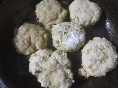 А затем кулинарной лопаткой переверните котлеты из филе минтая на другую сторону. И снова жарьте до золотистой корочки. Периодически проверяйте, не пригорают ли котлеты. Готовые сочные рыбные котлеты из минтая выложите на тарелку и подавайте к столу. Приятного аппетита!