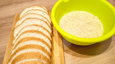 Окуните каждый ломтик хлеба в смесь так, чтобы он хорошо пропитался.