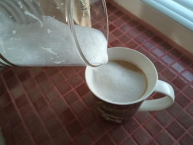 Молочную смесь переливаем в чашку с кофе и украшаем оставшейся пенкой. Можно дегустировать.