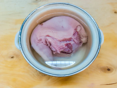 Переложите язык в кастрюлю и залейте его холодной водой. Поставьте кастрюлю на огонь. Доведите воду до активного кипения. Затем воду из кастрюли аккуратно слейте. Вода впитает в себя все вредное и ненужное, что есть в языке, и лучше ее никак не использовать.