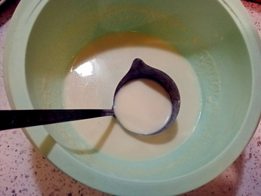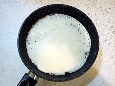 Тесто должно быть достаточно жидким, чтобы блины получались тоненькие.