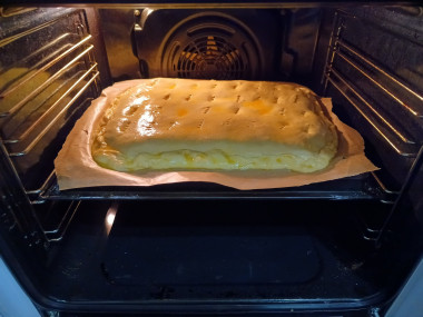 В основном всё готовил по описанию приготовления. Собранный пирог запекал в духовке 40 минут при 180 градусах.
