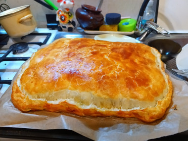 В начинку добавил 3 яйца С1. И смазал пирог еще одним яйцом.