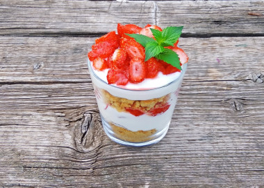 В случае с этим десертом, то всего-то и нужно, что поломать печенье, нарезать клубнику и смешать сметану с сахаром. Ничего не нужно взбивать и долго охлаждать.