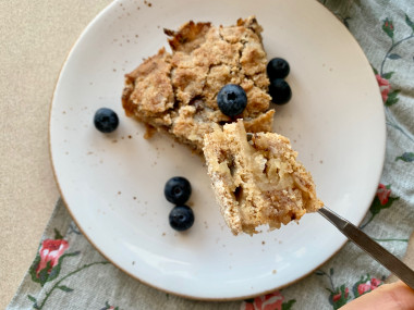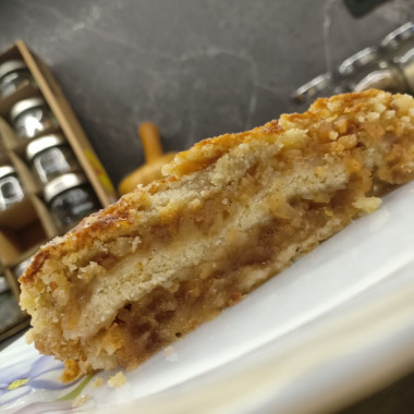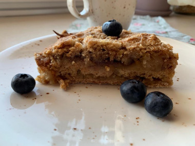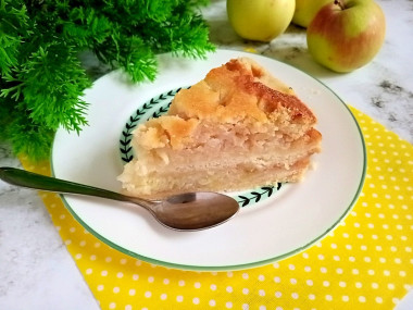Пирог получился высоким, и довольно тяжелым, ведь в нем столько сочных яблок! Больше всего мне нравится наблюдать как из "сухого" теста получаются полноценные пористые, песочные коржи!