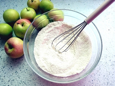 Тесто сделать проще простого, достаточно все хорошо перемешать, я это делаю венчиком. А вот тереть на терке килограмм с лишним яблок не очень хочется). Решила поэксперементировать и измельчила очищенные яблоки в блендере, загружала в три приема. Получилась довольно крупная сечка, почти как на терке. Но у меня яблоки твердые, с мягкими может получиться другой результат.