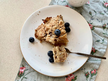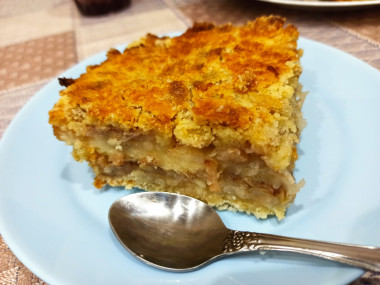 Хороший вкусный пирог получается. Слои отлично пропитываются и нет сухой непропеченой смеси. Корочка хрустящая и очень вкусная)). Делала похожий пирог с заливкой из молока, но этот лучше, на мой взгляд. А если немного полить сгущенкой - вообще обалденный вкус)).