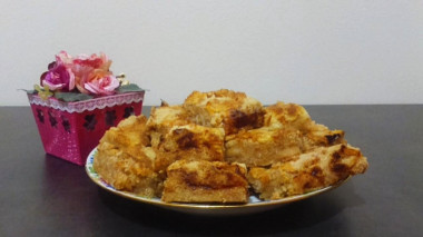 Обычно мы привыкли, что нужно для приготовления пирога смешать жидкие и сухие составляющие, чтобы получить разное по консистенции тесто и выпекать его без начинки или с ней. Но способ приготовления насыпного пирога очень отличается от привычных рецептов. Также он хорош тем, что когда хочется пирога с сочной начинкой, то очень сложно это сделать в обычном варианте. То тесто не пропекается от влажности начинки или начинка подсыхает, пока хорошо пропечется тесто. А тут все гармонично происходит и пирог получается и сочный и с хрустящей корочкой и нет непропекшегося жидкого теста. Главное условие в приготовлении такого пирога, чтобы яблоки были сочные, и при нагревании из них выделилось достаточно сока для пропитки сухой смеси.