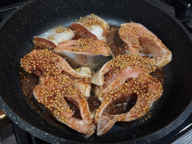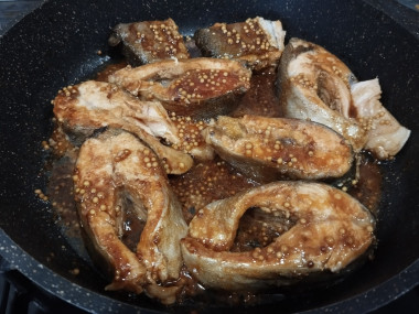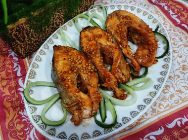 То же самое получается при мариновании рыбы. Французская горчица придает соусу пикантность. Рыба хорошо пропитывается маринадом. Поэтому во время жарения не пересыхает. Кстати во время жарки можно понемногу смазывать рыбу остатками маринада.