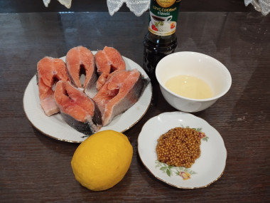 Для приготовления форели на сковороде жареной у меня были все необходимые ингредиенты, кроме зерен горчицы. Их я заменила обычной готовой горчицей, разведя её в соевой соусе.