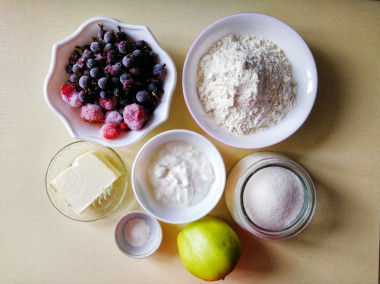 Тесто готовила на 4 порции. Для начинки взяла 1 яблоко и 200 г замороженных ягод, у меня были крыжовник и клубника.