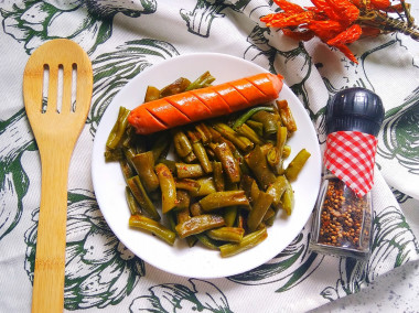 Очень быстро и просто получилась у меня такая вот фасоль. Стручковая фасоль у меня была замороженная, но не магазинная. Замороженную фасоль прямо замороженную отправила в кипящую подсоленную воду и отварила пять минут после повторного закипания. Затем остудила и обжарила в масле. Только масло у меня не оливковое, а сливочное. В процессе жарки все масло впиталось в стручки фасоли, она получилась нежной, сливочной. И жарится тоже быстро) Сверху посыпала свежемолотым перцем для аромата. Вместе с фасолью обжарила сосиску. Получился отличный завтрак! Очень вкусно и полезно! Фасоль не разварилась, осталась немного жестковатой, держит форму. Очень хороший рецепт!