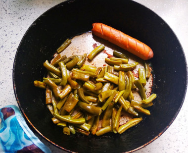 Как сделать фасоль на сковороде? Подготовьте ингредиенты по списку. Стручковую фасоль можно приобрести замороженной в магазине или использовать выращенную на своем участке. Как правило, фасоль, которая продается в магазине, уже мытая и нарезанная на небольшие кусочки, заморожена. Стручковая фасоль хорошо сочетается с чесночным, соевым соусом, томатной пастой и сливочным маслом. Поэтому можно выбрать основу по вкусу.