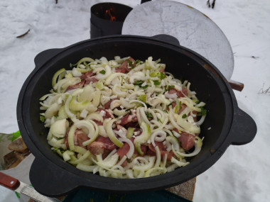 И завершающим слоем сделайте лук. В зависимости от размера казана, слоёв может получиться больше.