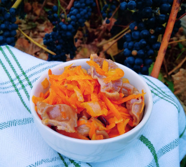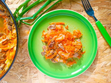 Получилось очень вкусно. Желудки мягкие, но при этом немного хрустящие. Морковка придает общему вкусу блюда приятную сладость. Отличный вариант простого и сытного ужина. Спасибо за рецепт!