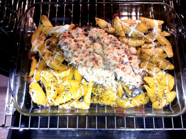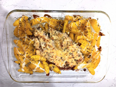 Очень вкусная и рыба и картошка!объедение!рыба нежная ,тает во рту за счёт сыра