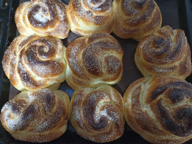 А большие булочки— это вообще отдельная любовь! Иногда хочется не маленьких аккуратных розочек, а именно таких — внушительных, щедрых, как в детстве у бабушки. Представляю, какой аромат стоял на кухне, пока они пеклись.