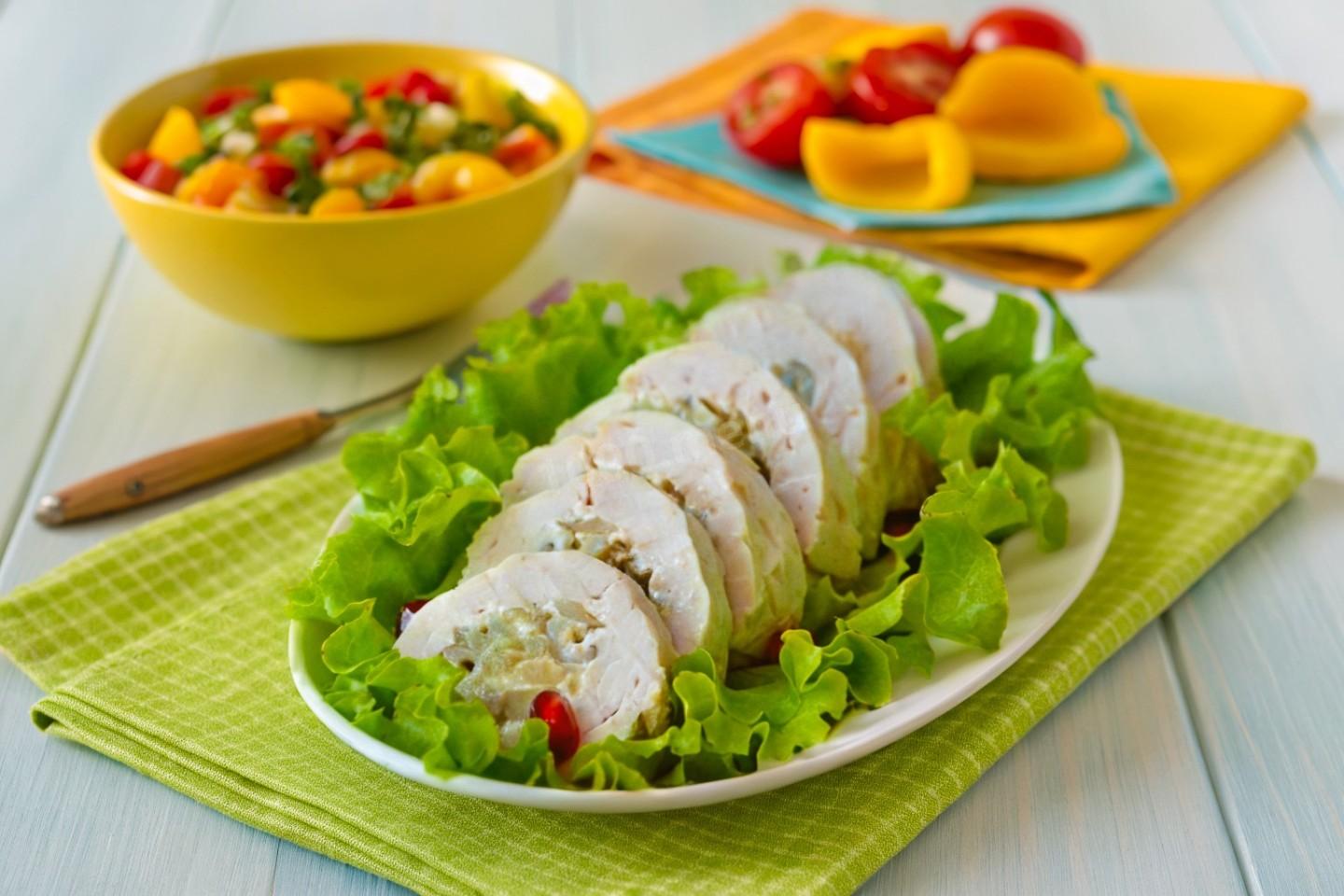 Аккуратно сверните филе в рулет, стараясь, чтобы начинка не вываливалась.