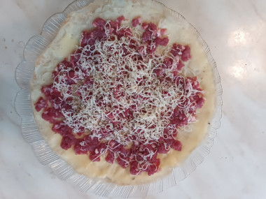 Фарш 500 г разделила на 5 порций, сыр натерла сверху фарша и присыпала орегано.