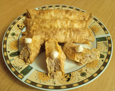 В начинку для бризолей можно использовать достаточно обширный список продуктов. Как вариант, можно их приготовить с лесными грибами или шампиньонами. Для более яркого аромата добавьте в начинку немного измельченного чеснока.
