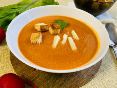 Сказать вкусно? Да, очень, вкус насыщенный, сырный, томатный, сделала чесночные сухарики, с ними еще и пикантность появилась. Сыну очень понравилось. Советую всем как полноценное первое блюдо.