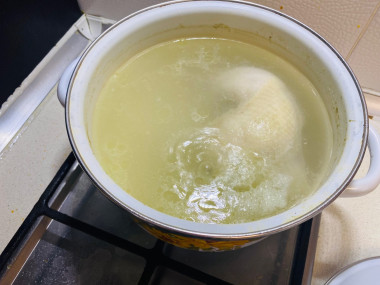 Сварила куриную четверть за полчаса, потом добавила к ней нарезанный кубиками картофель и проварила еще 15 минут.