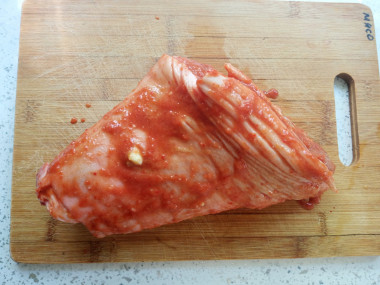 Солить рульку не рекомендую, соевый соус и так достаточно соленый. Обильно смажьте рульку маринадом со всех сторон, - это можно сделать в отдельной посуде или сразу в жаропрочной форме для запекания, предварительно застелив ее большим куском фольги. Оставьте мариноваться минут на 20-30.