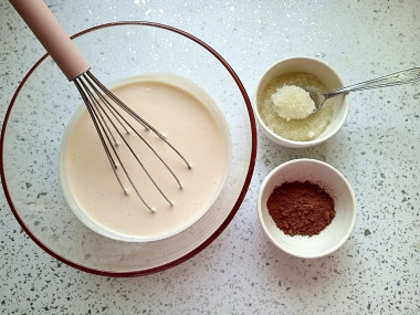 Добавьте разведенное какао в общий объем ряженки. Хорошо перемешайте до однородности.