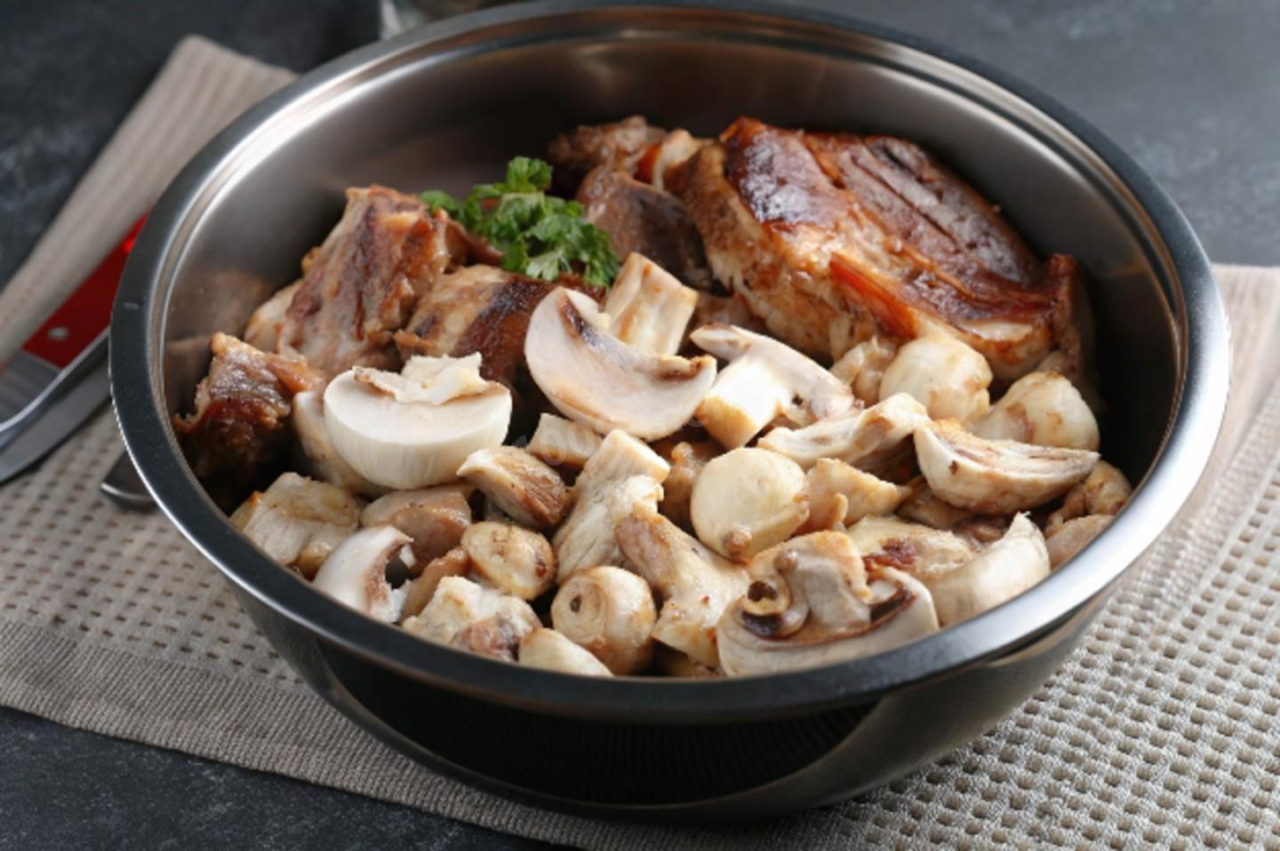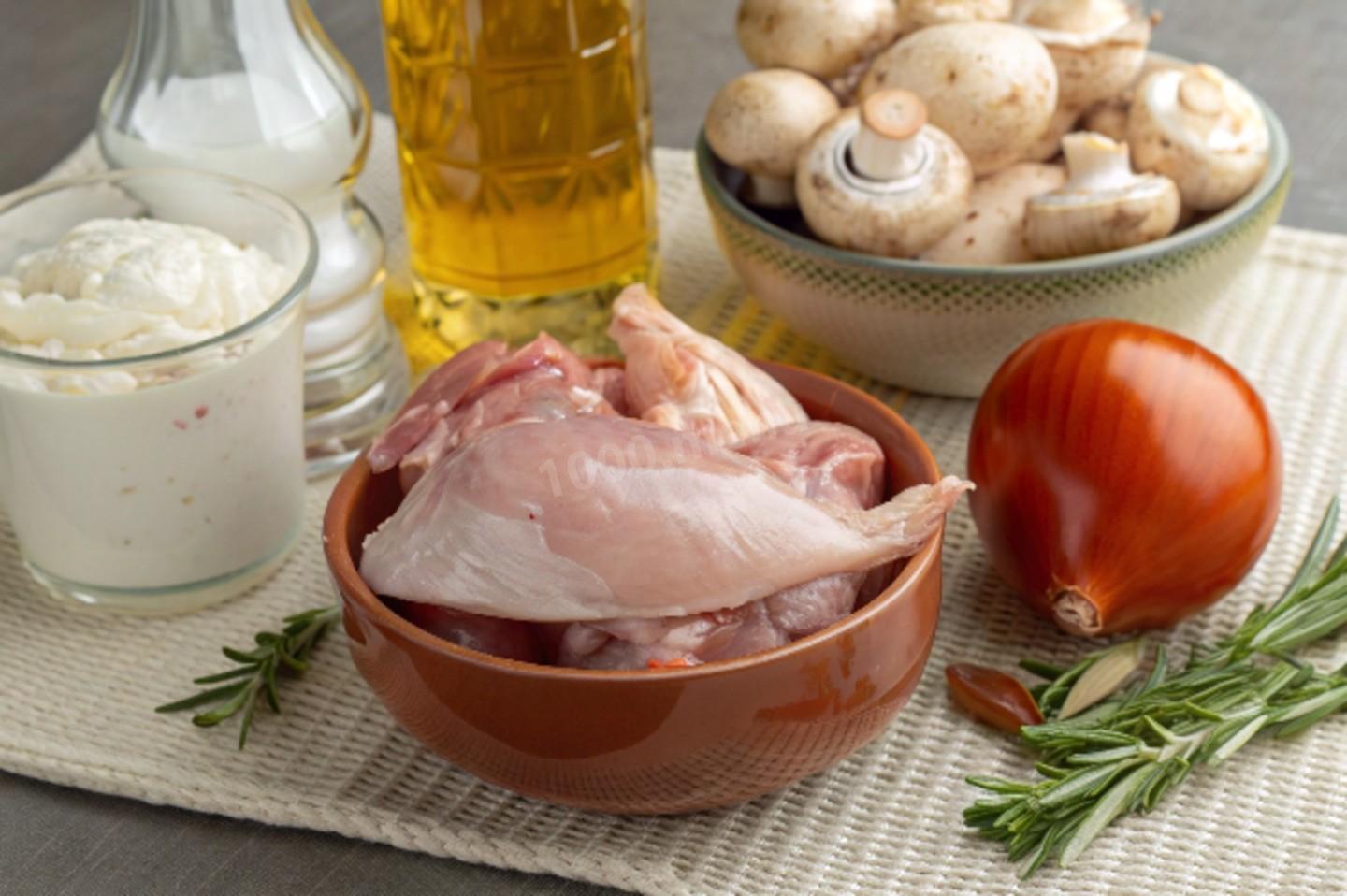 Шаг 1. Как сделать кролика с грибами тушеного в сметанном соусе?
