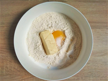 Включите разогреваться духовку на 180 градусов. В глубокой миске смешайте один желток, часть просеянной через сито муки, размягчённое сливочное масло и соль. Замесите эластичное тесто. Муку добавляйте постепенно, её может уйти меньше или больше, чем указано. Ориентируйтесь на консистенцию теста. Яйцо предварительно помойте в проточной воде с содой, так как на нем могут быть вредные бактерии. Готовое тесто легко собирается в шар и не липнет к рукам.