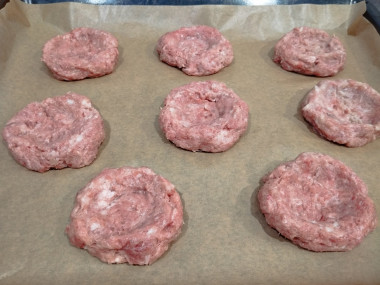 Форму для запекания смажьте растительным маслом. Из фарша слепите небольшие шарики и сделайте в них углубление.