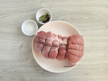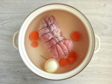 Мясо хорошо промыть. Обвязать мясной кусок пищевой нитью, чтобы при варке он сохранил форму брусочка.