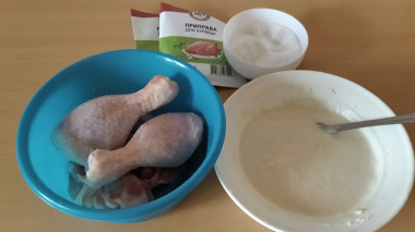 Как сделать куриные голени в кляре? Подготовьте ингредиенты. Нам понадобится: куриные голени; растительное масло; специи для окорочков (или для курицы); черный молотый перец и соль.