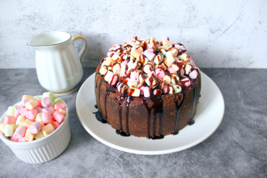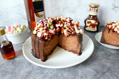 Я готовила этот чизкейк в разъемной форме на 16 см. Количество ингредиентов для этой формы я рассчитала, использую очень удобную функцию на сайте, выбрав 6 порций. А дальше все четко по рецепту, за исключением того, что печенье я измельчила через мясорубку. Для начинки я использовала сметану жирностью 30%, но стало очень интересно приготовить этот чизкейк уже с использованием жирных сливок. Но это уже в другой раз. Чтобы чизкейк получился более интересным, сверху я выложила маршмеллоу и полила шоколадным сиропом. Шоколадный чизкейк получился ну очень вкусным и, к моему счастью, не очень сладким! Для более насыщенного вкуса я рекомендую выбирать шоколад с 70% содержанием какао. Кстати, чизкейк получается очень сытным, поэтому, даже взяв ингредиентов на 6 порций, мой небольшой чизкейк был разделен на 10 порций.