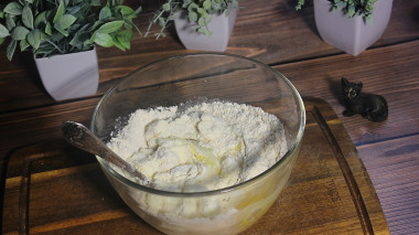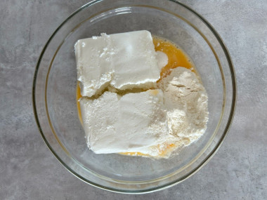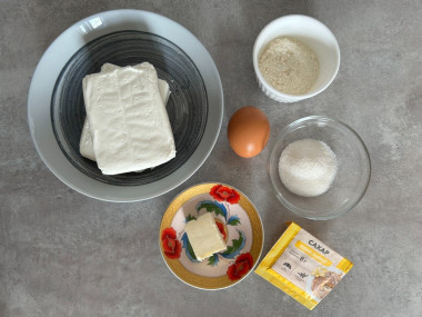 Все ингредиенты взяла в том количестве, которое рекомендуется в рецепте. Кроме сахара. Я обратила внимание на замечание автора, что с тремя ложками творожники получатся достаточно сладкими. Так что добавила две ложки сахара, попробовала тесто и для меня сладости оказалось достаточно.